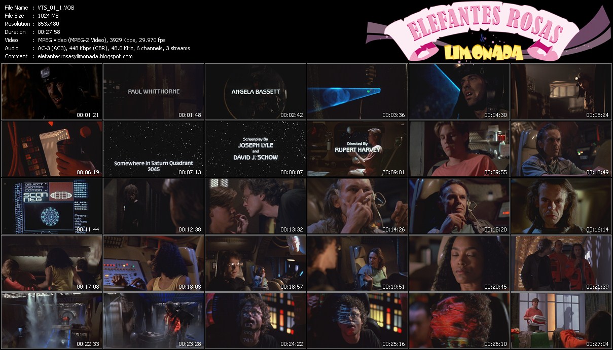 | Los menús del DVD son los originales, por tanto el audio castellano no es seleccionable desde ahí. Para escucharla en castellano debéis acceder al idioma, una vez iniciada la película, desde el mando a distancia (o desde el reproductor que uséis en el ordenador). También os aparecerán varias secciones en el menú principal a las que no habrá acceso ya que se quitaron de este montaje. Éste DVDr (así como sus tres secuelas) está montado por Grupo Cine-Digital, yo simplemente lo he bajado de la mula y subido a descarga directa. | |