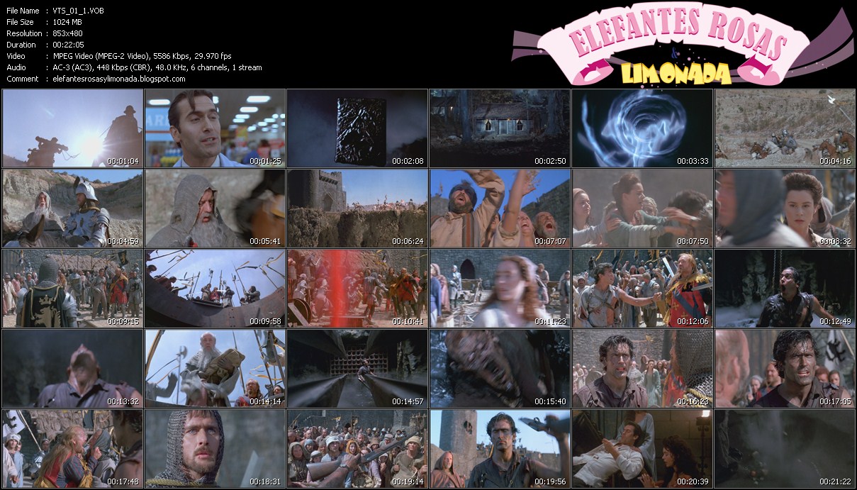 | Título Original Army Of Darkness Año 1992 Duración Versión cines: 85 min / Versión director: 96 min. Director Sam Raimi Reparto Bruce Campbell, Embeth Davidtz, Marcus Gilbert, Ian Abercrombie, Richard Grove, Bridget Fonda Productor Dino De Laurentiis, Bruce Campbell, Robert G. Tapert Guión Sam Raimi, Ivan Raimi Estudio Dino de Laurentiis Communications, Reinaissance Pictures Más Información IMDB / WIKIPEDIA | |
